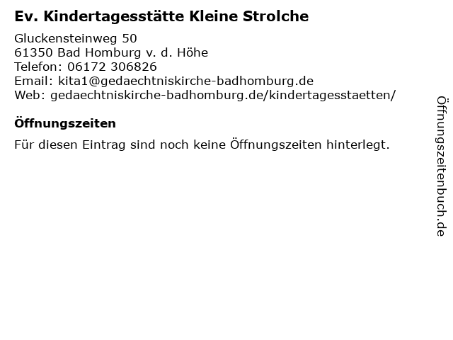 | Ev. Kindertagesstätte Kleine Strolche anrufen | |