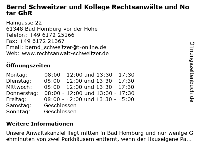 Branchen & Suchbegriffe zu Bernd Schweitzer und Kollege Rechtsanwälte und Notar GbR:bernd, gbr, kollege, notar, rechtsanwalt, rechtsanwälte, schweitzer, strafrecht, zivilrecht, öffentliches recht |