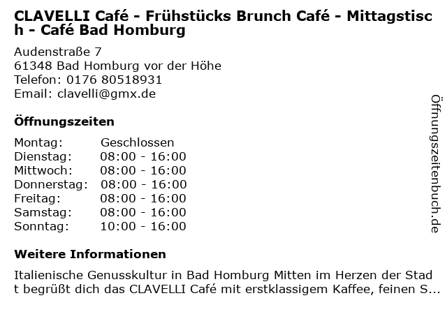 Branchen & Suchbegriffe zu CLAVELLI Café - Frühstücks Brunch Café - Mittagstisch - Café Bad Homburg:bad, brunch, café, clavelli, frühstücks, mittagstisch |