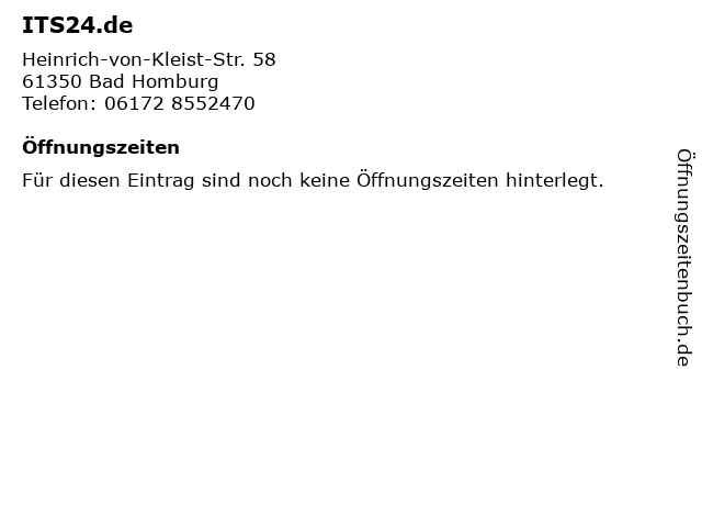 | Öffnungszeiten ITS24.de in Bad Homburg anzeigen | |