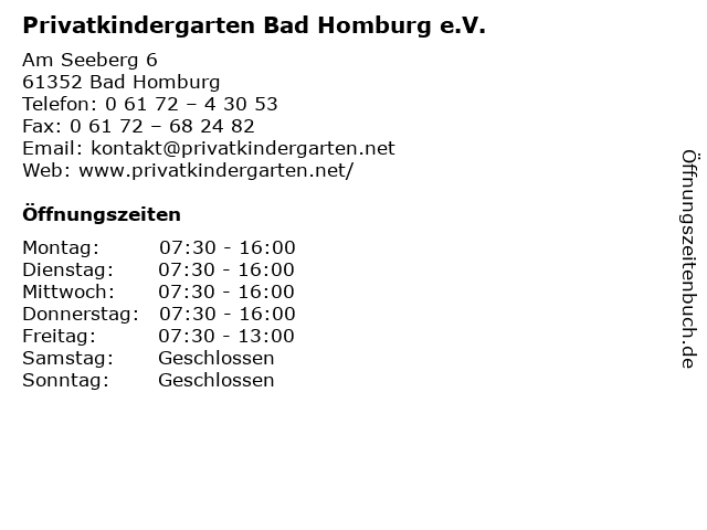 Branchen & Suchbegriffe zu Privatkindergarten Bad Homburg e.V.:bad, dienstleistung, e.v., kiga, kinder, kinderbetreuung, kindergarten, kindertagesbetreuung, kindertagesstätte, kita, privatkindergarten, tagesbetreuung |