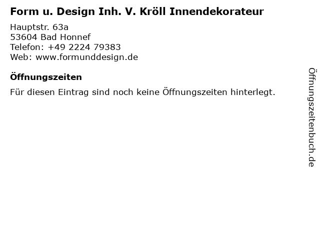 | Form u. Design Inh. V. Kröll Innendekorateur anrufen | |