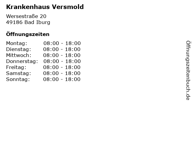 | Öffnungszeiten Krankenhaus Versmold in Bad Iburg anzeigen | |
