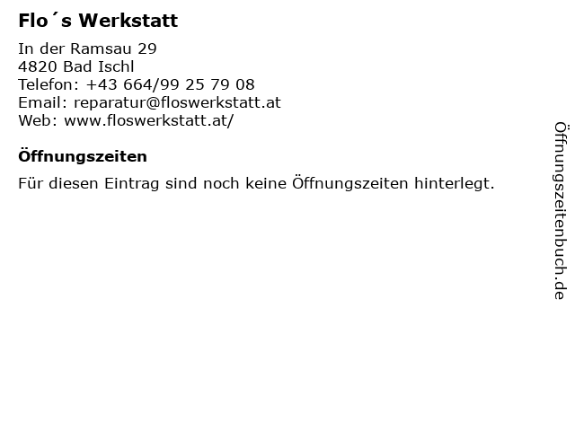 | Öffnungszeiten Flo´s Werkstatt in Bad Ischl anzeigen | |