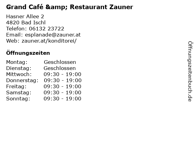 Öffnungszeiten Grand Café & Restaurant Zauner
