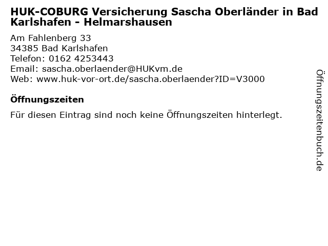 | HUK-COBURG Versicherung Sascha Oberländer in Bad Karlshafen - Helmarshausen anrufen | |