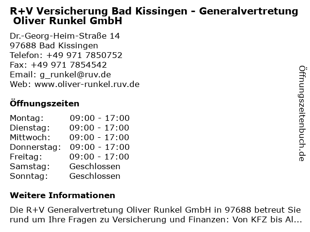 Branchen & Suchbegriffe zu R+V Versicherung Bad Kissingen - Generalvertretung Oliver Runkel GmbH:altersvorsorge, bad, generalvertretung, kfz-versicherung, krankenversicherung, oliver, privatrente, r+v, raiffeisen, rentenversicherung, runkel, ruv, versicherung |