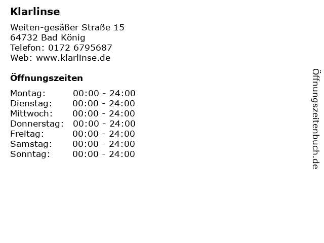 | Öffnungszeiten Klarlinse in Bad König anzeigen | |