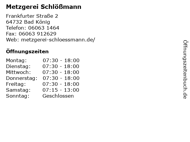 | Öffnungszeiten Metzgerei Schlößmann in Bad König anzeigen | |