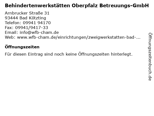 | Behindertenwerkstätten Oberpfalz Betreuungs-GmbH anrufen | |