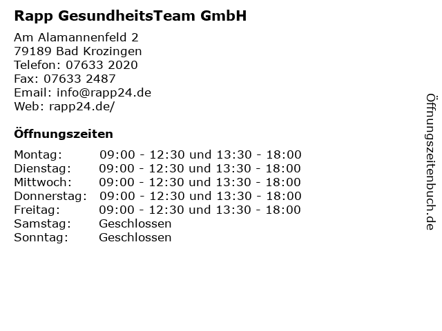 3 Maurer Rapp und Henneberg Werbeagentur GmbH (Entfernung: 12,32 km) Heinrich-von-Stephan-Str. 5, 79100 Freiburg 5 Ingrid Rapp Psychotherapeutische Praxis f. Kinder, Jugendliche u. Eltern (Entfernung: 12,65 km) Kronenstr. 24, 79100 Freiburg 6 |