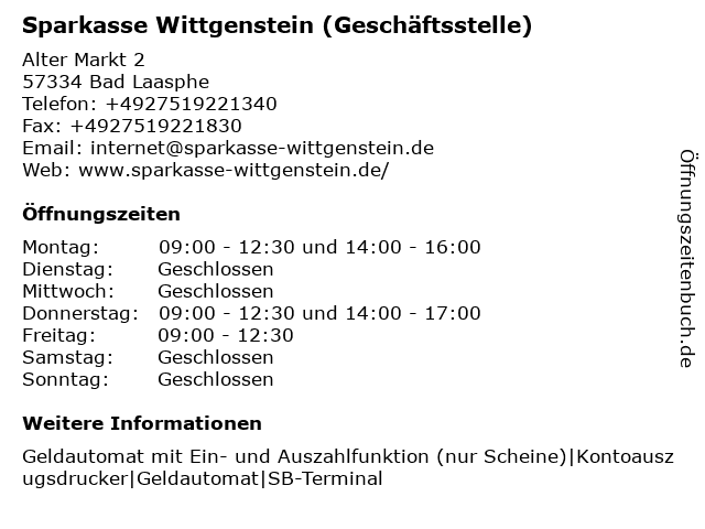 Branchen & Suchbegriffe zu Sparkasse Wittgenstein (Geschäftsstelle):geschäftsstelle, sparkasse, wittgenstein |