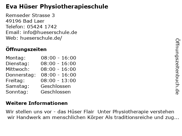 Branchen & Suchbegriffe zu Eva Hüser Physiotherapieschule:eva, hüser, physiotherapieschule |