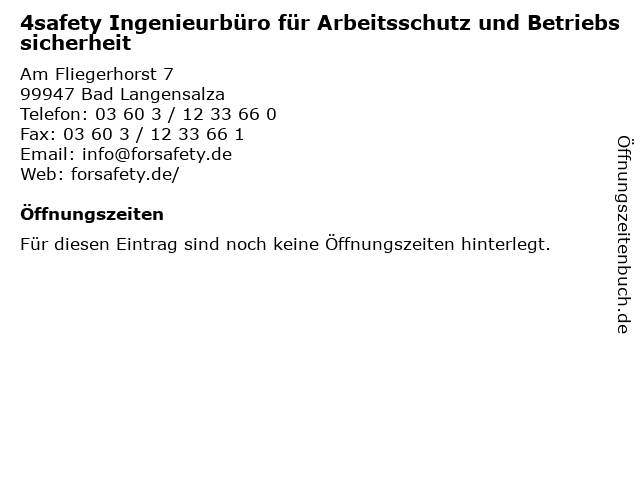 | 4safety Ingenieurbüro für Arbeitsschutz und Betriebssicherheit anrufen | |