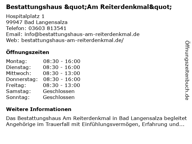 Branchen & Suchbegriffe zu Bestattungshaus "Am Reiterdenkmal":"am, bestattungshaus, reiterdenkmal" |