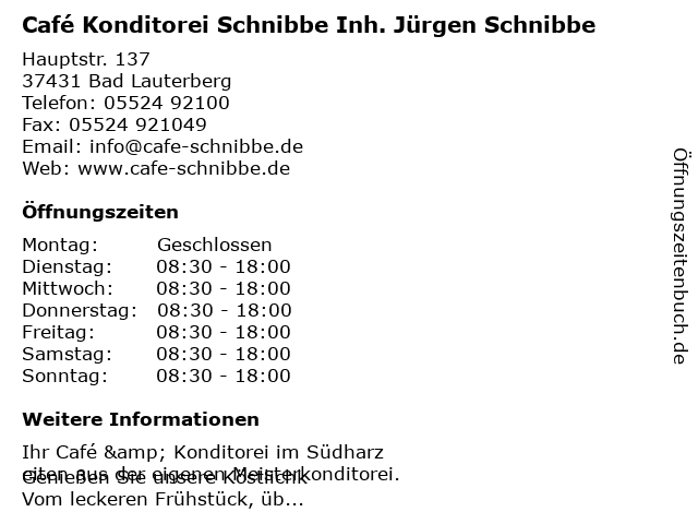 Branchen & Suchbegriffe zu Café Konditorei Schnibbe Inh. Jürgen Schnibbe:café, jürgen, konditorei, schnibbe |
