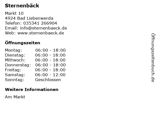 Öffnungszeiten Sternenbäck in Bad Liebenwerda anzeigen | |