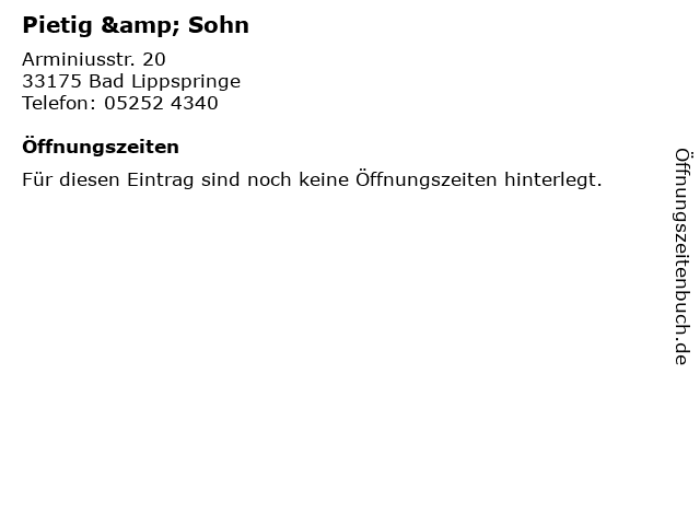| Öffnungszeiten Pietig & Sohn in Bad Lippspringe anzeigen | |