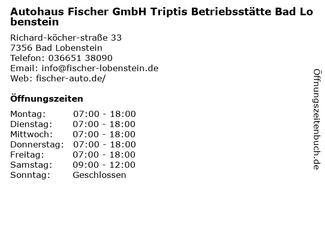 Branchen & Suchbegriffe zu Autohaus Fischer GmbH Triptis Betriebsstätte Bad Lobenstein:autohaus, bad, betriebsstätte, fischer |