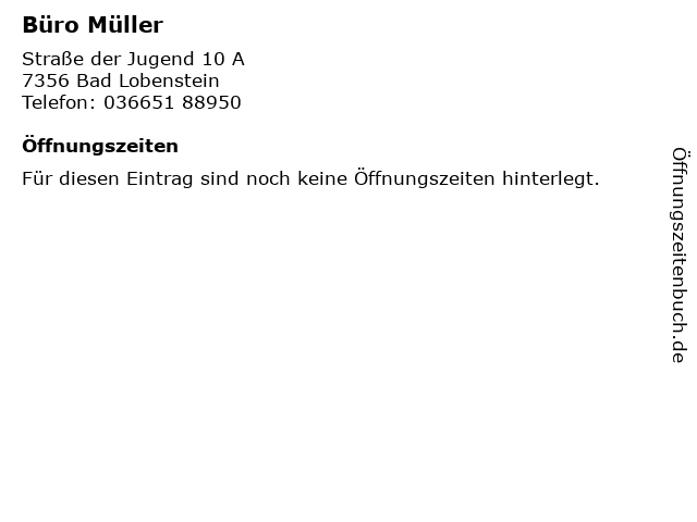 | Öffnungszeiten Büro Müller in Bad Lobenstein anzeigen | |