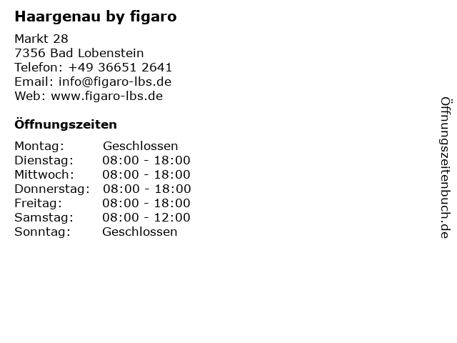 | Öffnungszeiten Haargenau by figaro in Bad Lobenstein anzeigen | |