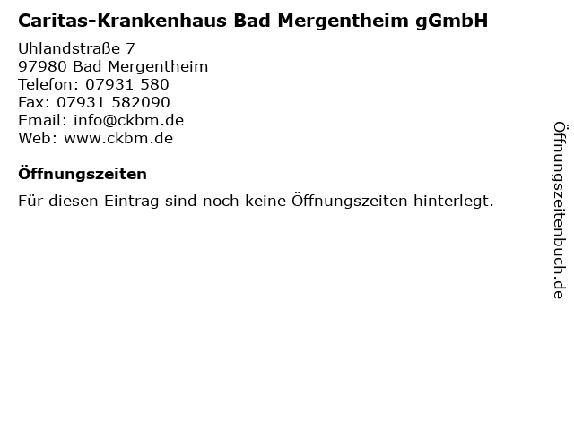 | Caritas-Krankenhaus Bad Mergentheim gGmbH anrufen | |