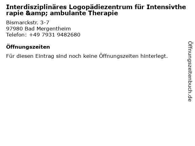 | Interdisziplinäres Logopädiezentrum für Intensivtherapie & ambulante Therapie anrufen | |