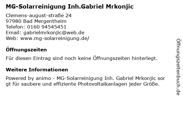 | MG-Solarreinigung Inh.Gabriel Mrkonjic anrufen | |