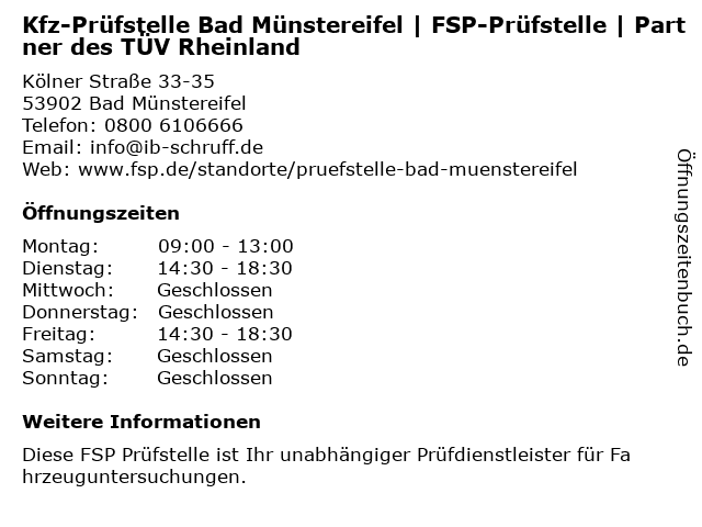 Branchen & Suchbegriffe zu Kfz-Prüfstelle Bad Münstereifel | FSP-Prüfstelle | Partner des TÜV Rheinland:bad, des, fsp, kfz, partner, prüfstelle, rheinland, tüv |