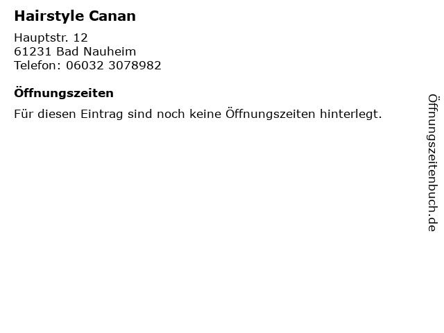 | Öffnungszeiten Hairstyle Canan in Bad Nauheim anzeigen | |