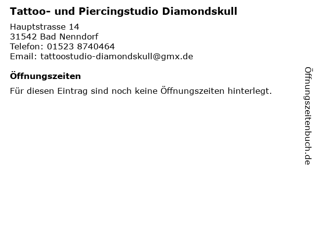 | Tattoo- und Piercingstudio Diamondskull anrufen | |