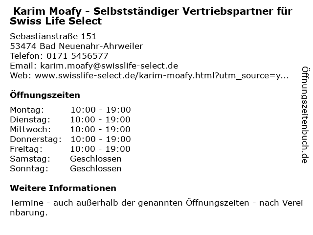 Branchen & Suchbegriffe zu Karim Moafy - Selbstständiger Vertriebspartner für Swiss Life Select:berufshaftpflichtversicherung, berufsunfähigkeitsversicherung, finanzplanung, gebäude- und hausratsversicherung, investmentservice, karim, lebensversicherung, life, mietrechtsschutzversicherung, moafy, pflegeversicherung, selbstständiger, select, swiss, versicherungsberater, vertriebspartner |