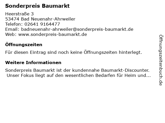 Hinweis: Sonderpreis Baumarkt ist der kundennahe Baumarkt-Discounter. Unser Fokus liegt auf den wesentlichen Bedarfen für Heim und Garten. Dabei vereinen wir ein faires Preis-Leistungs-Verhältnis mit Produkt- und Serviceorientierung.