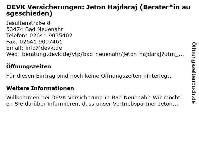 | DEVK Versicherungen: Jeton Hajdaraj (Berater*in ausgeschieden) anrufen | |