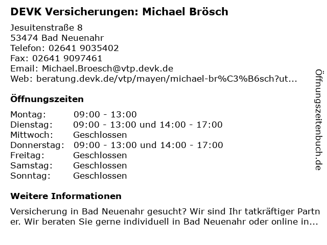 Branchen & Suchbegriffe zu DEVK Versicherungen: Michael Brösch:altersvorsorge, autoversicherung, berufsunfähigkeitsversicherung, brösch, devk, gebäude- und hausratsversicherung, gewerbeversicherung, kfz-versicherung (motorrad), lebensversicherung, michael, mietrechtsschutzversicherung, reiseversicherungsagentur, versicherungen |