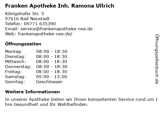 Branchen & Suchbegriffe zu Franken Apotheke Inh. Ramona Ullrich:apotheke, franken, ramona, ullrich |