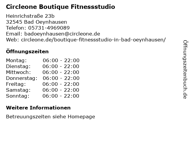 Öffnungszeiten Circleone Boutique Fitnessstudio in Bad Oeynhausen anzeigen