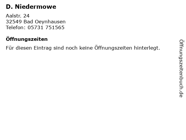 | Öffnungszeiten D. Niedermowe in Bad Oeynhausen anzeigen | |