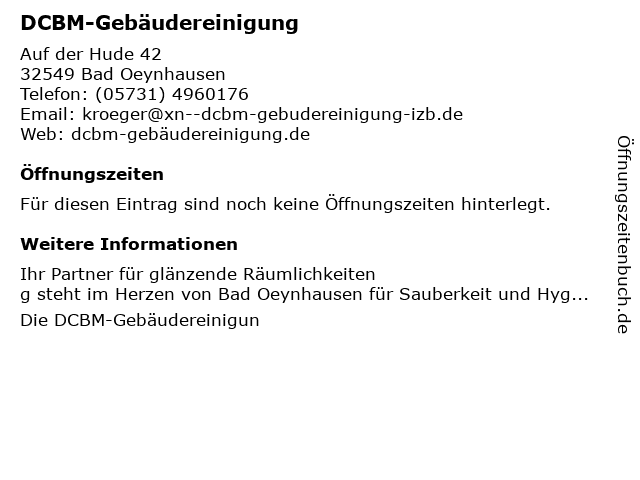 Branchen & Suchbegriffe zu DCBM-Gebäudereinigung:bodenflächenreinigung, dcbm, dcbm-gebäudereinigung, flurreinigung, gebäudereinigung, hallenreinigung, hausreinigung, hotelreinigung, kita-reinigung, praxisreinigung, reinigung von sanitäranlagen, treppenhausreinigung, unterhaltsreinigung, werkstattreinigungen |