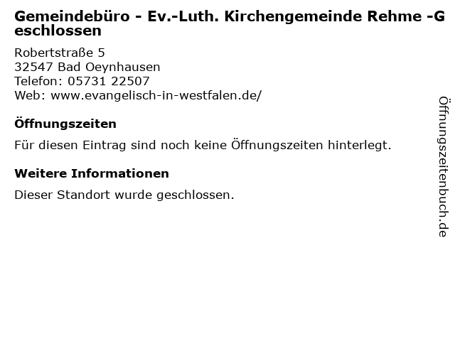 | Gemeindebüro - Ev.-Luth. Kirchengemeinde Rehme -Geschlossen anrufen | |