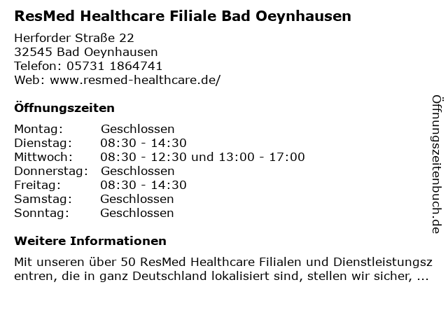Branchen & Suchbegriffe zu ResMed Healthcare Filiale Bad Oeynhausen:bad, healthcare, resmed, schlafapnoe |