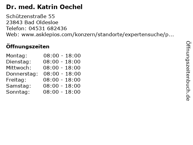 Öffnungszeiten Dr. med. Katrin Oechel in Bad Oldesloe anzeigen | |