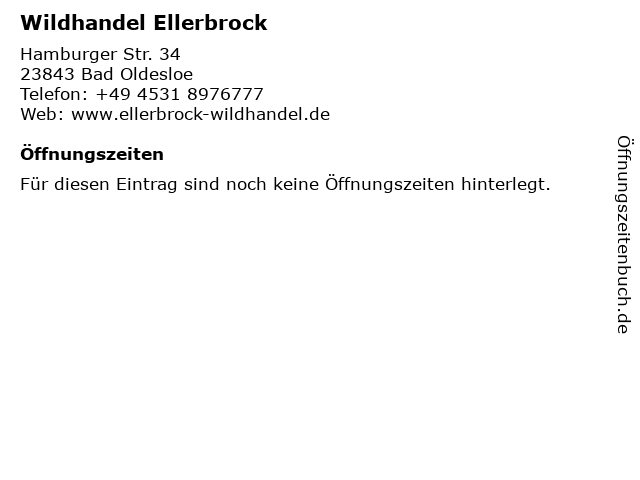 | Öffnungszeiten Wildhandel Ellerbrock in Bad Oldesloe anzeigen | |