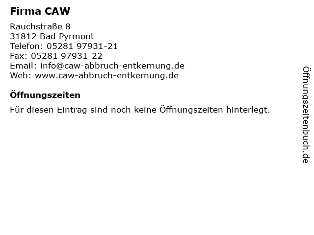 | Öffnungszeiten Firma CAW in Bad Pyrmont anzeigen | |