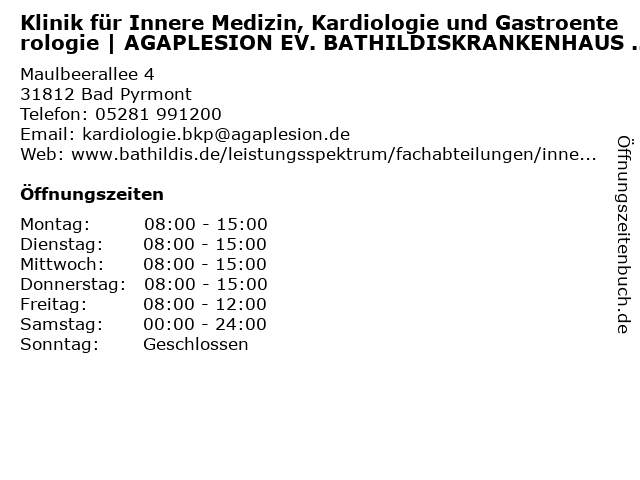 Branchen & Suchbegriffe zu Klinik für Innere Medizin, Kardiologie und Gastroenterologie | AGAPLESION EV. BATHILDISKRANKENHAUS BAD PYRMONT:agaplesion, bad, bathildiskrankenhaus, ev., gastroenterologie, innere, kardiologie, klinik, krankenhäuser, medizin, pyrmont |