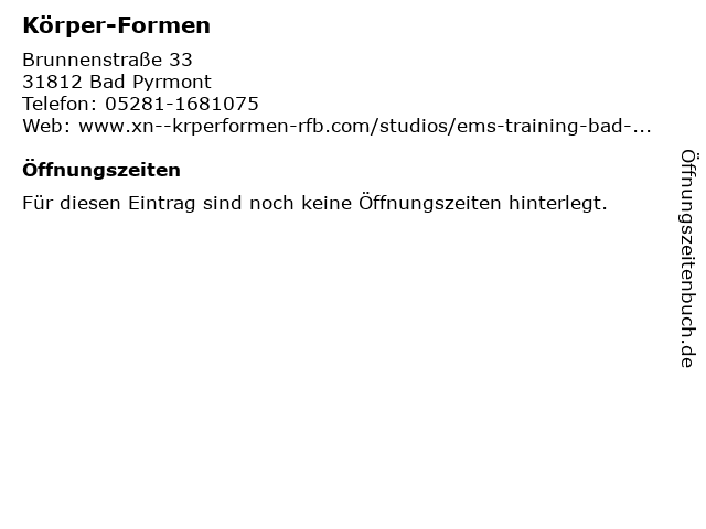| Öffnungszeiten Körper-Formen in Bad Pyrmont anzeigen | |