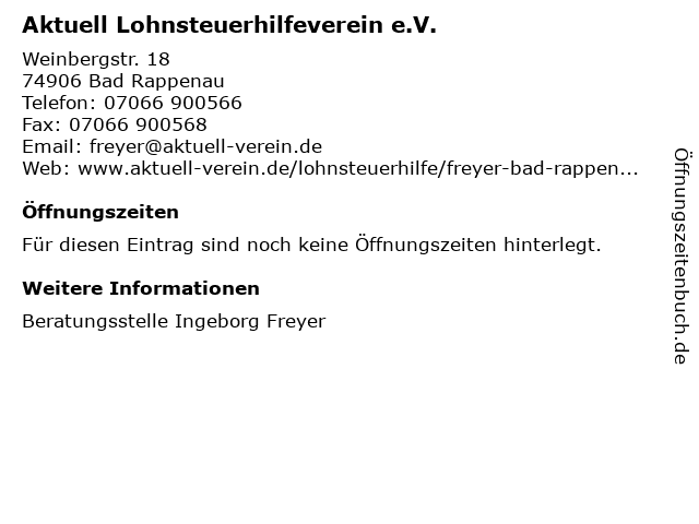 | Aktuell Lohnsteuerhilfeverein e.V. anrufen | |