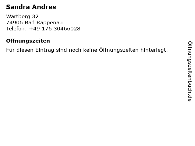 | Öffnungszeiten Sandra Andres in Bad Rappenau anzeigen | |