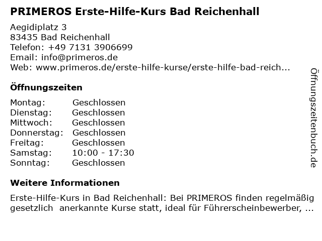 Branchen & Suchbegriffe zu PRIMEROS Erste-Hilfe-Kurs Bad Reichenhall:bad, erste, erste hilfe am unfallort, erste hilfe kurs, erste-hilfe, erste-hilfe-kurs, führerschein sehtest, herz-lungen-wiederbelebung, herzinfarkt, hilfe, kurs, primeros, schlaganfall, stabile seitenlage, verbandmaterial, weiterbildung |