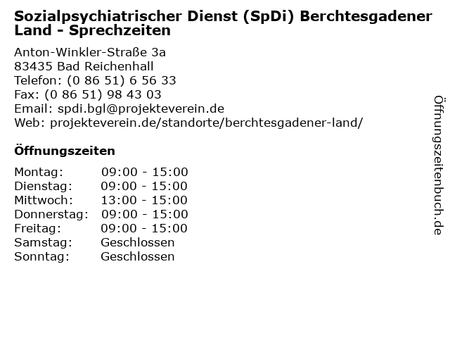 Branchen & Suchbegriffe zu Sozialpsychiatrischer Dienst (SpDi) Berchtesgadener Land - Sprechzeiten:anlaufstelle, beratung, berchtesgadener, dienst, hilfe, land, psychiatrisch, sozialpsychiatrischer, spdi, sprechzeiten, vermittlung |